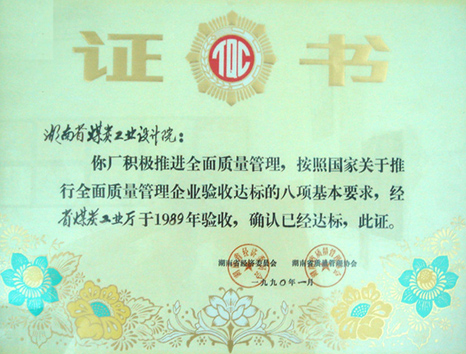 全面質量管理合格證書(1989)